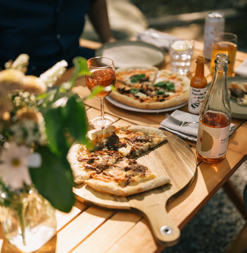 Au Gite des Oies un menu unique de pizza à l'oie, faites avec des ingrédients locaux, de haute qualité, provenant de notre propre production responsable.